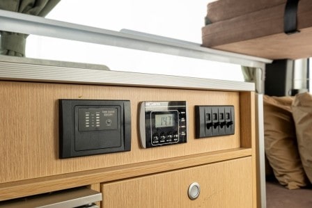 - Touchscreen display with radio, Bluetooth, Android Auto/Apple CarPlay, USB-C in cab, USB in house