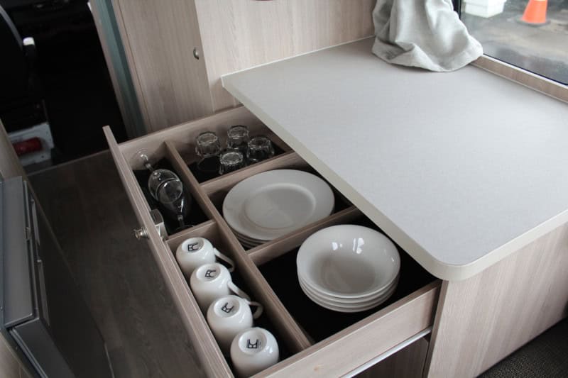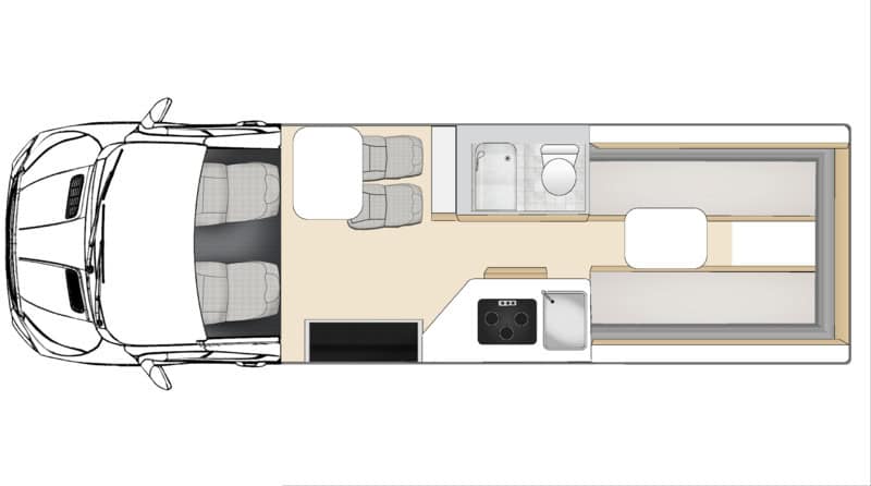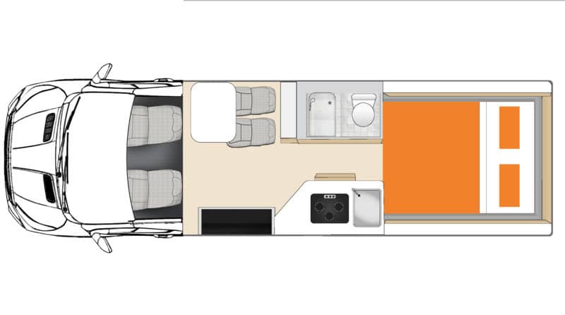 - Front rotating seats which provides an additional seating/dining area meaning the rear bed can be left made up