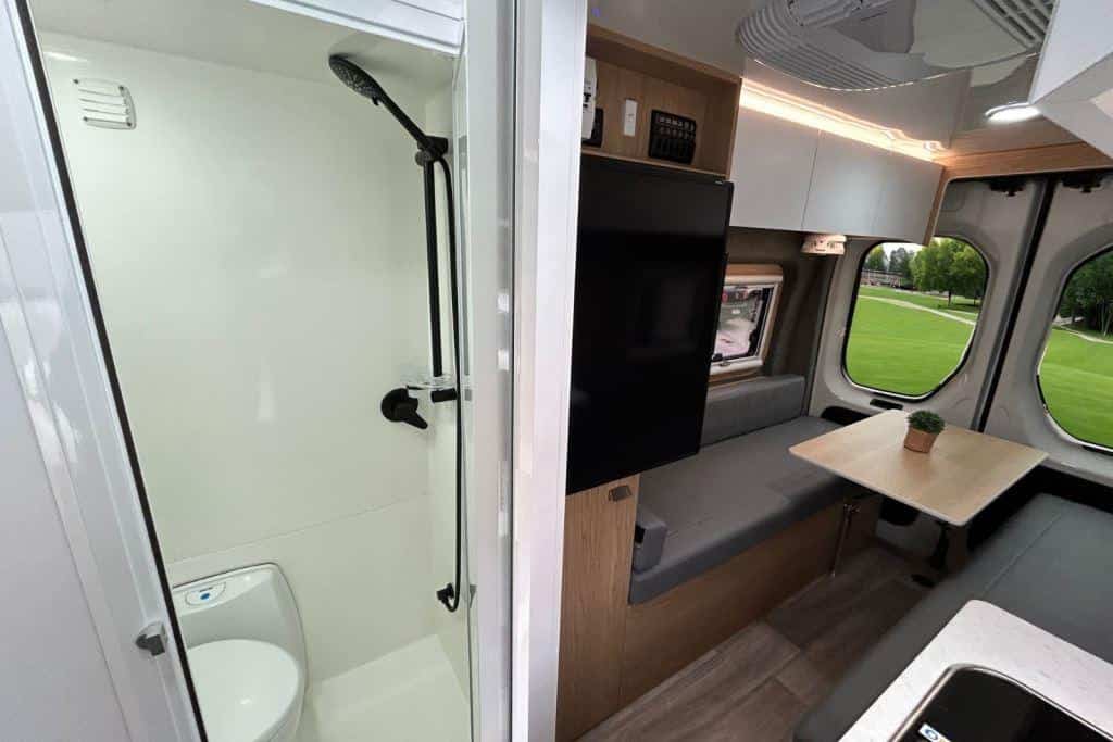 Features on board toilet and shower, modern kitchen area, living/dining area with a TV. Available from depots Brisbane, Cairns, Hobart, Melbourne, Perth and Sydney.