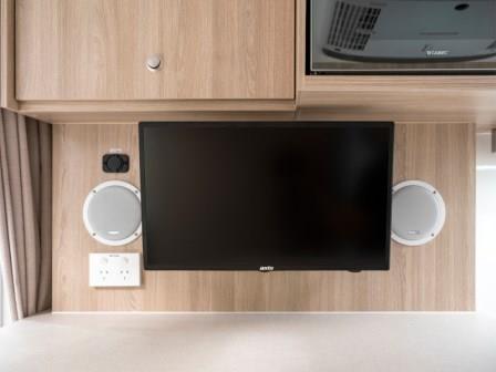 - Touchscreen display with radio, bluetooth, USB-C in cab, monitor with DVD Player/USB/HDMI input, CD player, external USB. Vehicles after 1 April 2026 will have Android Auto/Apple CarPlay.