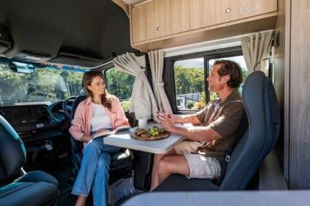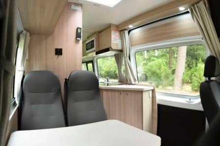 • Front rotating seats which provides an additional seating/dining area meaning the rear bed can be left made up