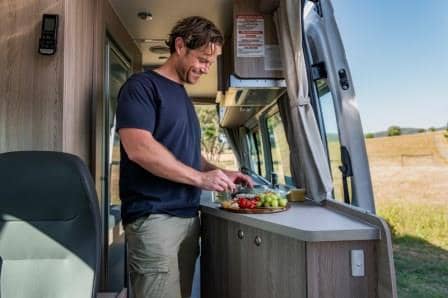 Perfect for those who enjoy the finer things in life. Features on board toilet/shower, solar panel, kitchen, and a large double bed which can also be two singles. Note: singles are possible but please note they are narrow at only 60cm wide. This vehicle has front seats which rotate, meaning you can leave your bed made up and still have somewhere to sit.