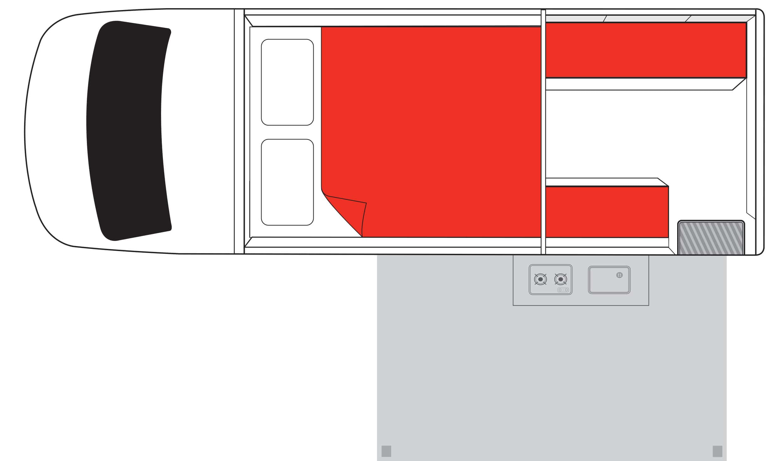 • Perfect vehicle for those that want a bit more comfort while travelling, sleeps inside and more of a ‘camper’ like living space while still having the ability to drive on unsealed roads or some 4WD tracks.