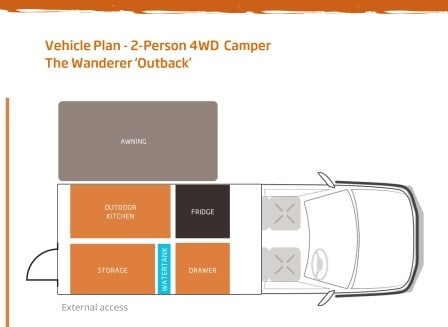- The RedSands Wanderer Outback 2 berth 4WD camper is available from Adelaide, Broome, Darwin and Perth. For longer hires of 80 days or more, other drop off locations are available.